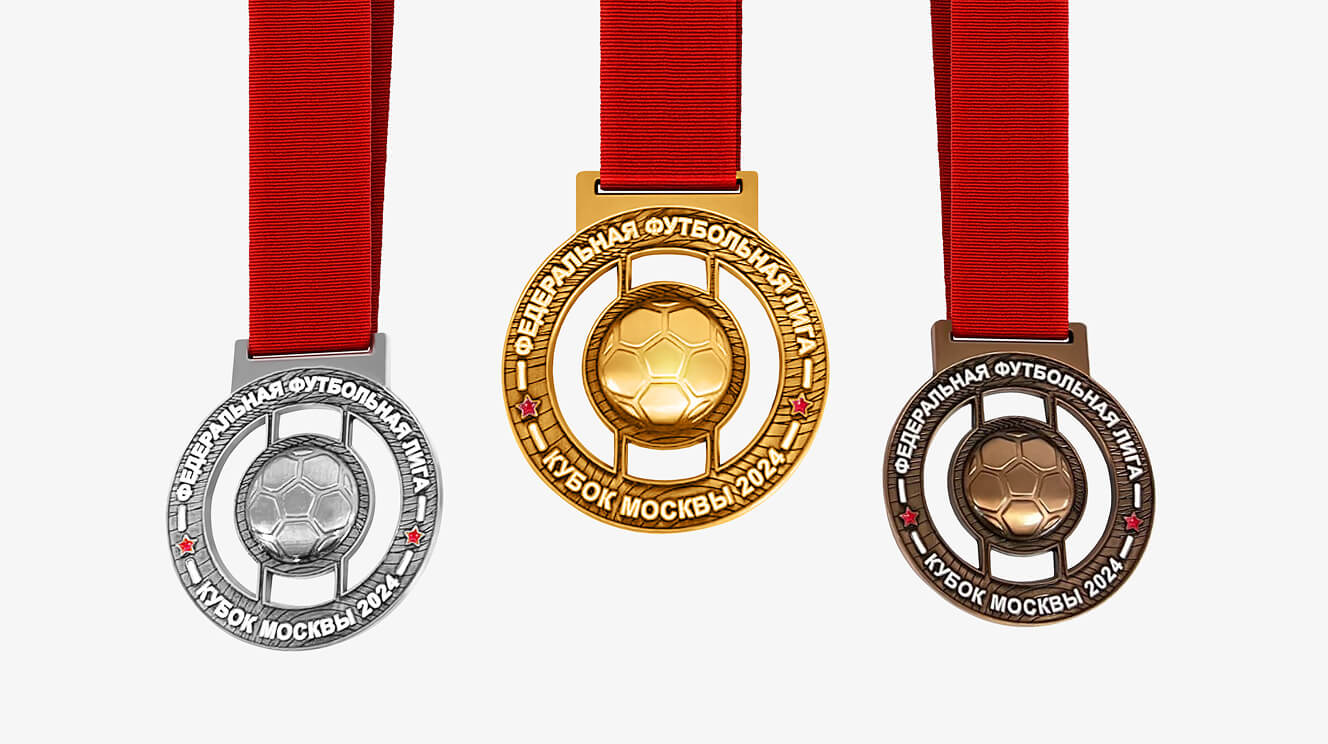 Разработали дизайн медалей для турнира по футболу «Кубок Москвы». Медали получились не только красивыми, но и приятными на ощупь. Их вес и текстура создают ощущение значимости и ценности награды.